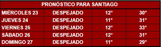 “Este viernes 25 de diciembre tendremos la tarde más cálida del fin de semana navideño en los valles centrales, tanto así, que Santiago espera 33° de máxima ese día”, anticipa el meteorólogo de Chilevisión y CNN Chile, Eduardo Sáez Brito.