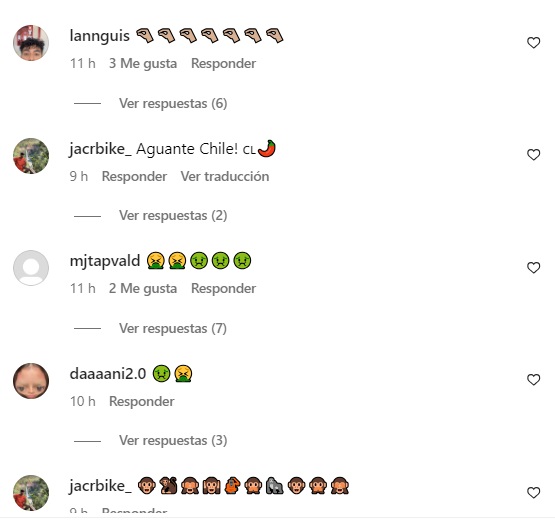 "Mala leche", "mal educado" o "aguante Chile" fueron los comentarios que más se repetían entre los usuarios.