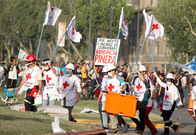 "Me tocó declarar en la Comisión de Derechos Humanos del Senado, me ha tocado declarar en Fiscalía por casos muy puntuales, pero hay reserva de información. Dentro de la neutralidad que tiene la Cruz Roja, no puedo decir que vi a carabineros apuntando directamente a la cara porque estábamos tan concentrados en lo que hacíamos que no teníamos tiempo para observar alrededor. Pero sí me tocó atender a personas muy malheridas por las cuales después tuve que declarar", argumenta Acosta.