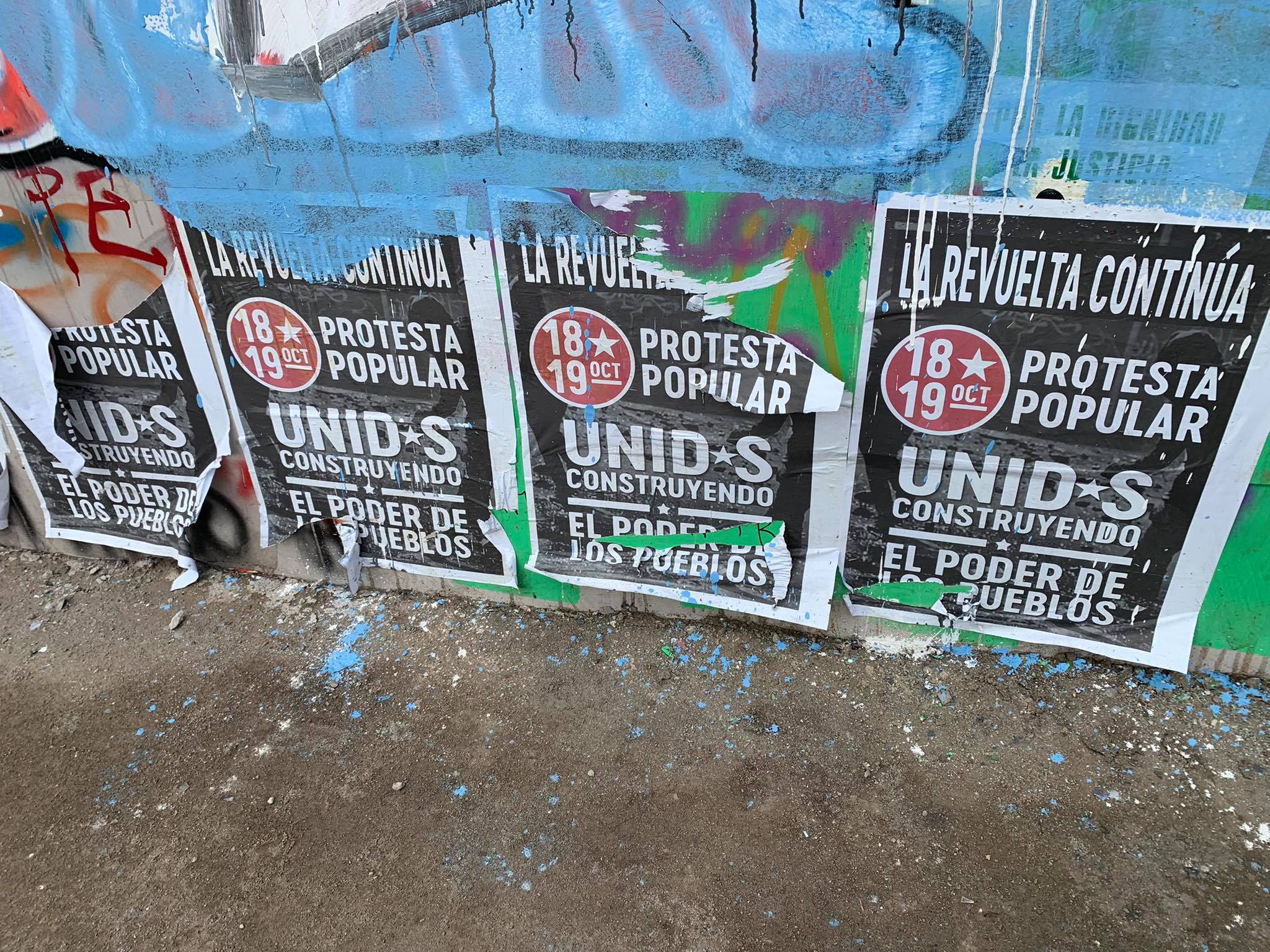 Continuando con el recorrido, esta vez una tarde del día jueves 14 de octubre, hay carteles que indican que se espera una gran convocatoria para la conmemoración de los dos años, llamando a una protesta popular porque "la revuelta continúa".