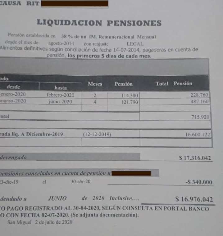 Al igual que Solange, cuando comenzó el trámite para hacer la solitud de retención, Alicia hizo la petición. Sabe que el padre de Tomás puede retirar $1 millón de su fondo de AFP y a ella le adeuda poco más de la mitad de ese monto.
