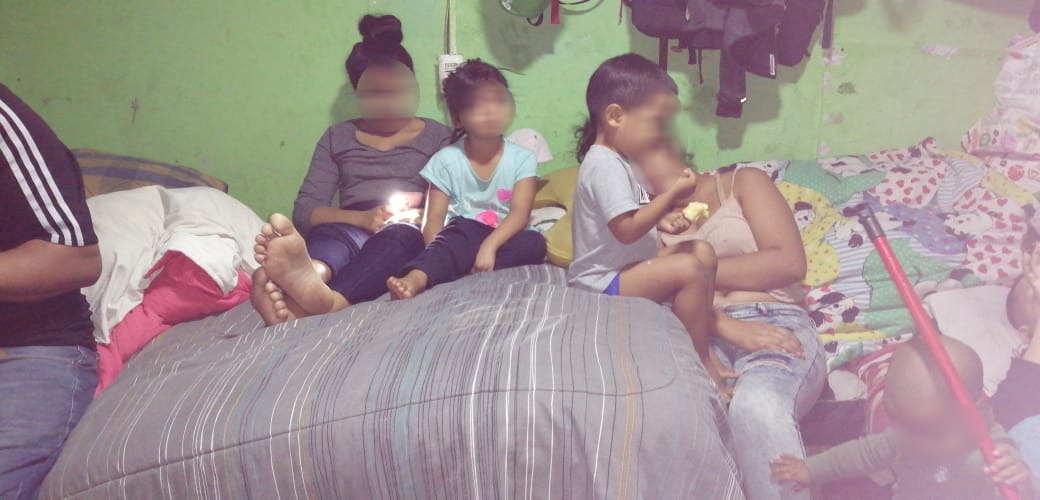 "Está mi esposo, mi cuñado, estoy yo, mi hija de 18 años, otra hija de 17, otra de 13 y tres nietos: una de cinco, otra de tres y de un año. Compartimos una pieza de 3x3 metros. Somos nueve personas. ¿Qué va a ser de nosotros?", lamenta la madre esta familia.