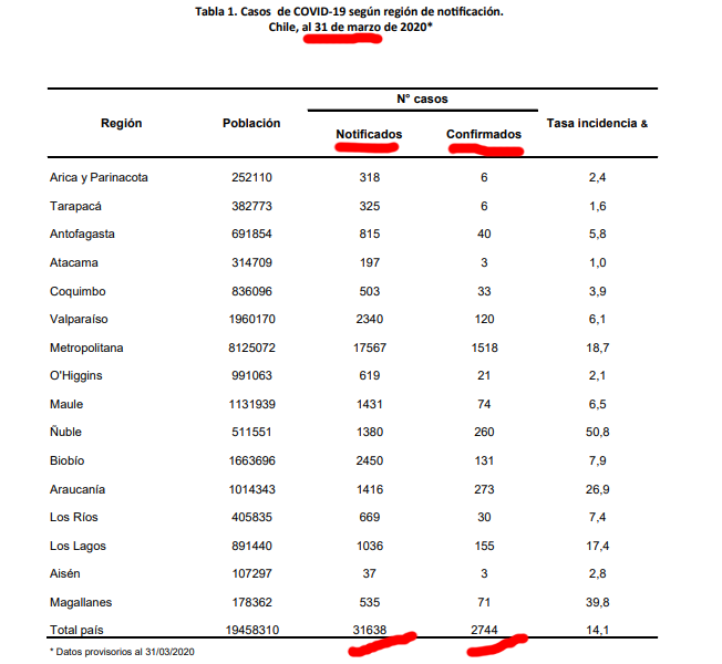 Otro antecedente no menor es la diferencia que existe en los informes del Minsal entre los casos “notificados” y los casos “confirmados”.