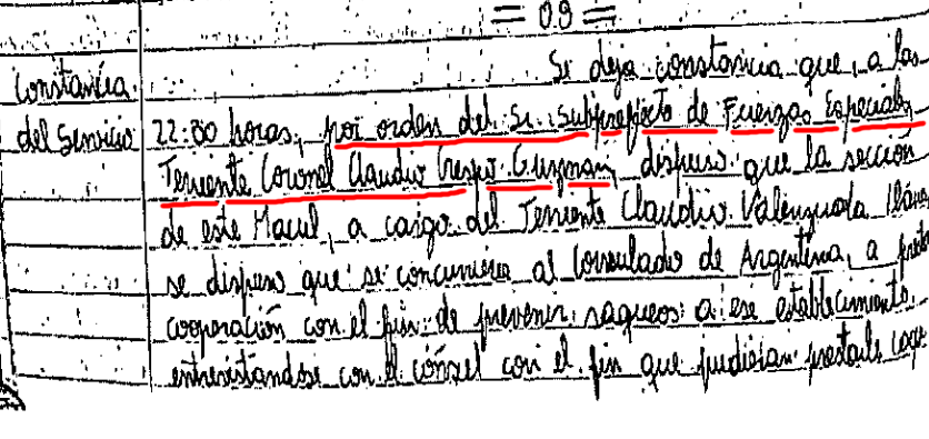 No obstante, al repasar esta lista, hay algo que de inmediato llama la atención. En ella no aparece el nombre del teniente coronel Claudio Crespo Guzmán, así como tampoco figura en casi ninguna de las cerca de 300 páginas del sumario realizado por Carabineros.