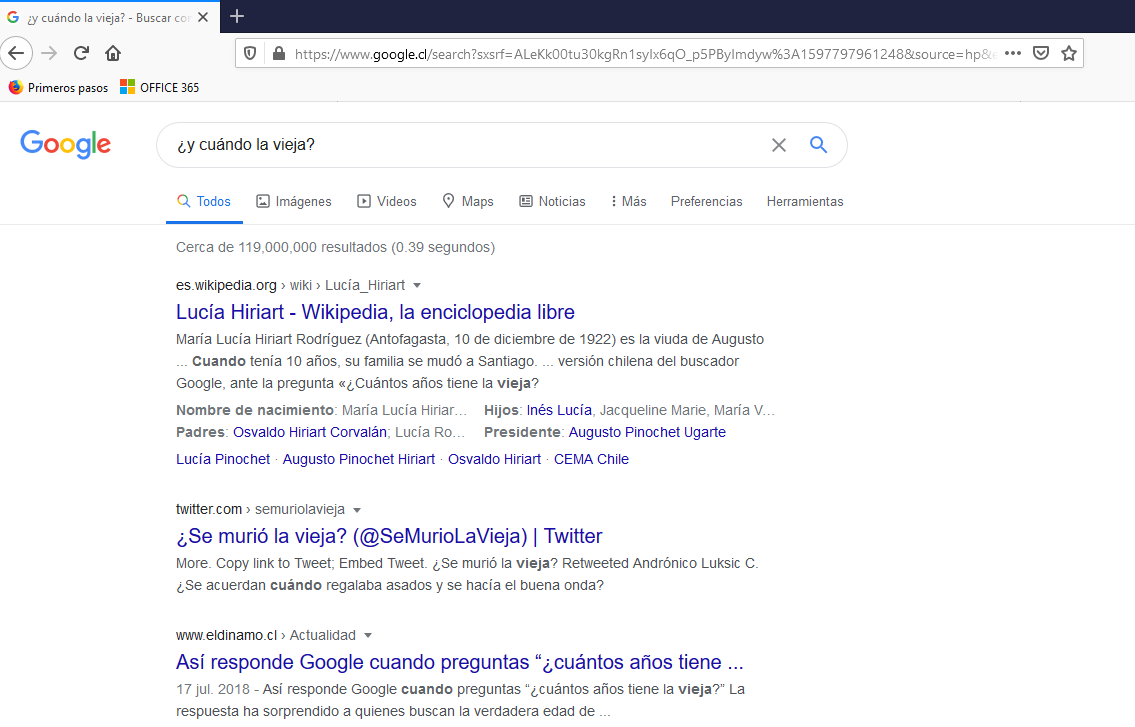 Esporádicamente el deceso de Hiriart es viral en redes sociales al punto que, si uno pregunta en Google ¿cuántos años tiene la vieja? o ¿y cuándo la vieja? la primera respuesta que arroja es el sitio con la biografía de la “señora Lucía” en Wikipedia. Su muerte es un fenómeno que sin duda ha sido potenciado por la inestable salud que presenta la viuda del general desde hace ya varios años.