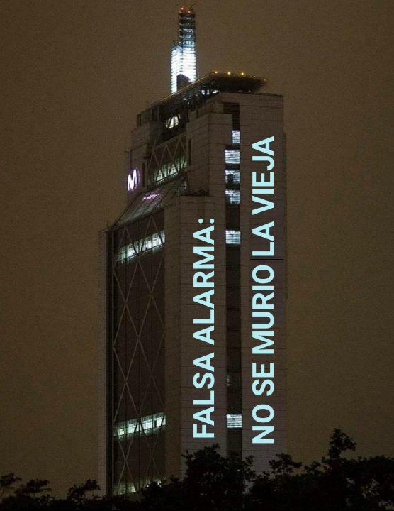 Para dejarlo aún más claro, en redes sociales comenzó también a circular la imagen del edificio de telefónica con un mensaje aclaratorio: Falsa alarma, se leía en la supuesta proyección.