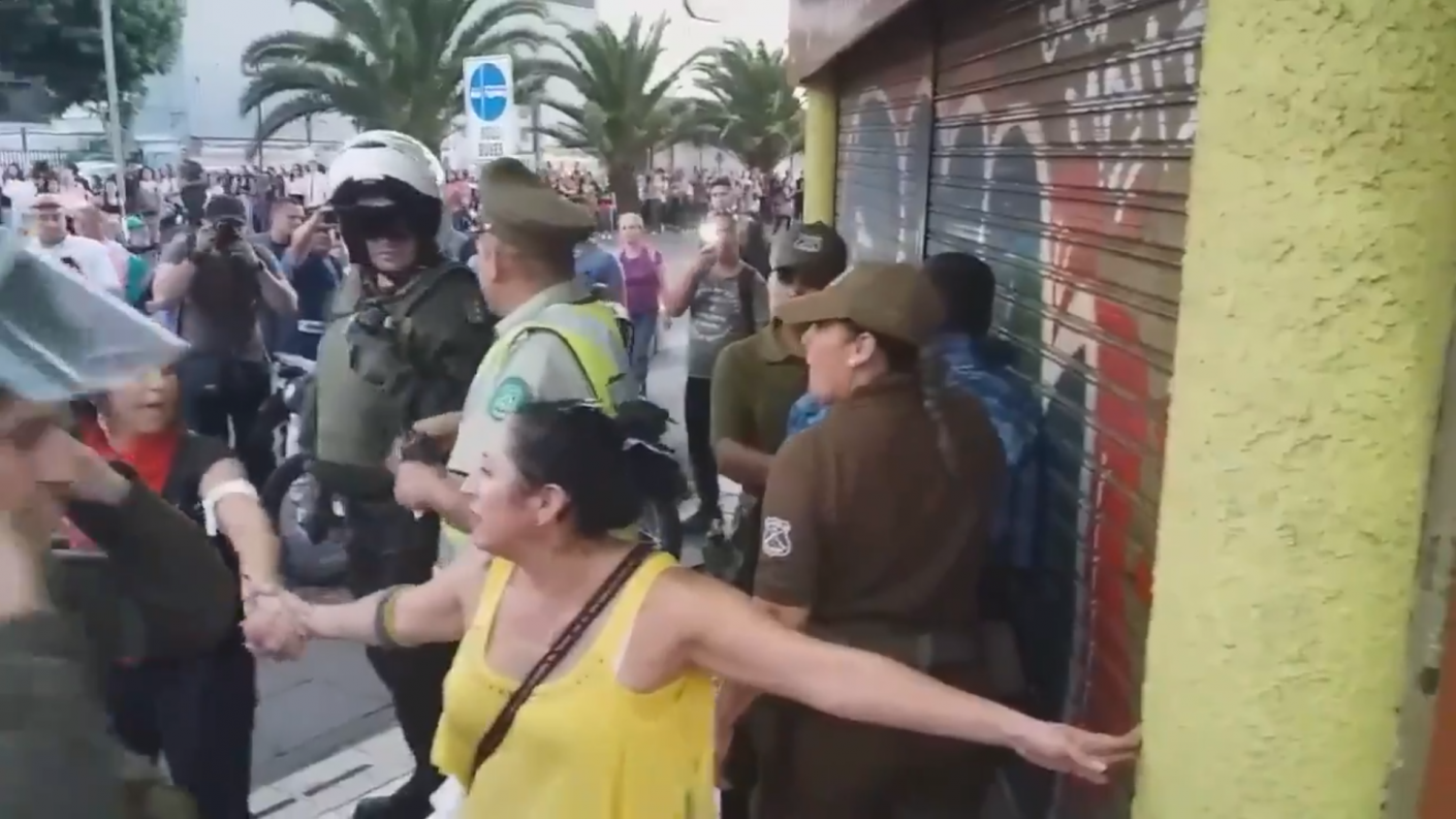 Según queda registrado en un video compartido en redes sociales por Cristofer Espinoza, periodista de Cooperativa, el sujeto fue arrinconado en Carrera, esquina Aníbal Pinto, por un grupo de mujeres para prevenir que el sujeto se escapara, hasta que llegó Carabineros.