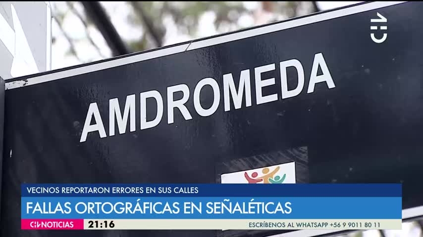 Dos vergonzosos errores ortográficos fueron denunciados por los vecinos de Lo Espejo. Aseguran que en la intersección de Andrómeda con Eduardo Frei Montalva la señalética está mal escrita.