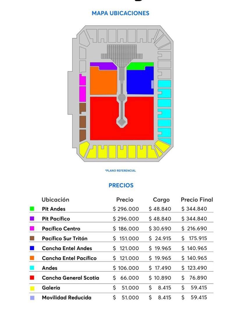 Hay que considerar que los tickets estarán disponibles, en primera instancia, durante una preventa exclusiva para Clientes Entel o pagando con Tarjetas Scotia.