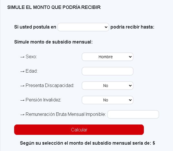 Para simular el monto a recibir, hay que completar un formulario con los siguientes datos: