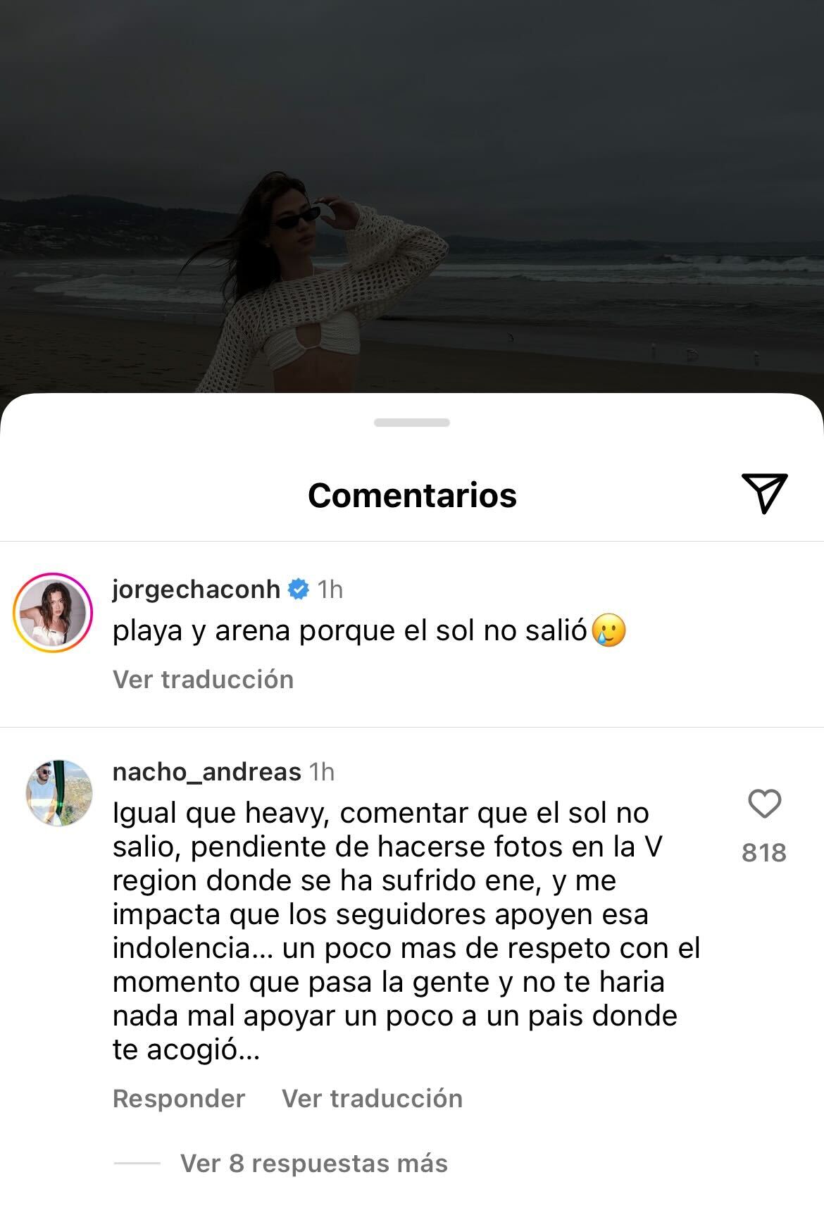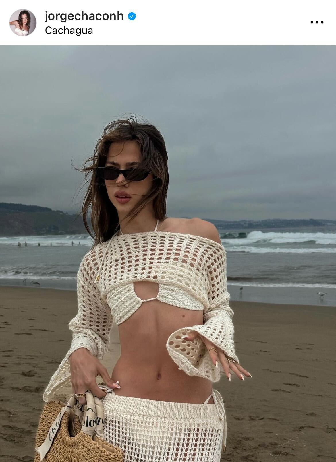 El modelo e influencer Jorge Chacón compartió este domingo tres fotografías desde Cachagua, junto al texto "playa y arena porque el sol no salió", desatando una gran controversia en redes sociales.