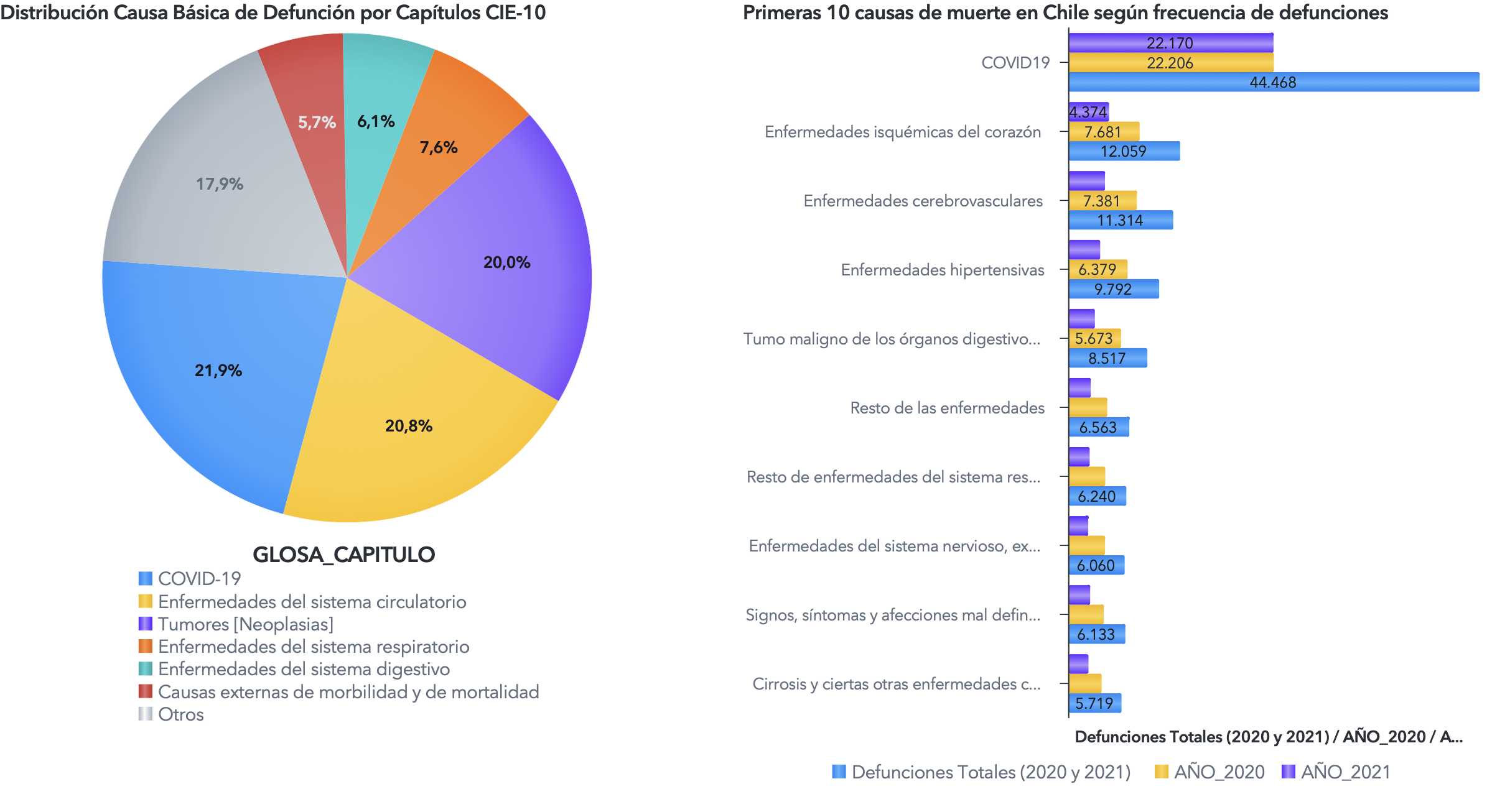 Lee también: Dra. Carolina Herrera: "En las UCI tenemos pacientes que están desde febrero sufriendo la enfermedad grave"El total de decesos por COVID-19 se elevó a 44.376. De ellos, 34.403 son defunciones confirmadas y 9.973 son sospechosas. Las muertes por COVID-19 entre 2020 y 2021 representan el 21,88% del total de defunciones del país (202.842).