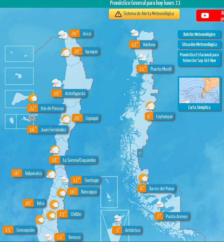 Dirección Meteorológica de Chile este lunes 11 de septiembre: