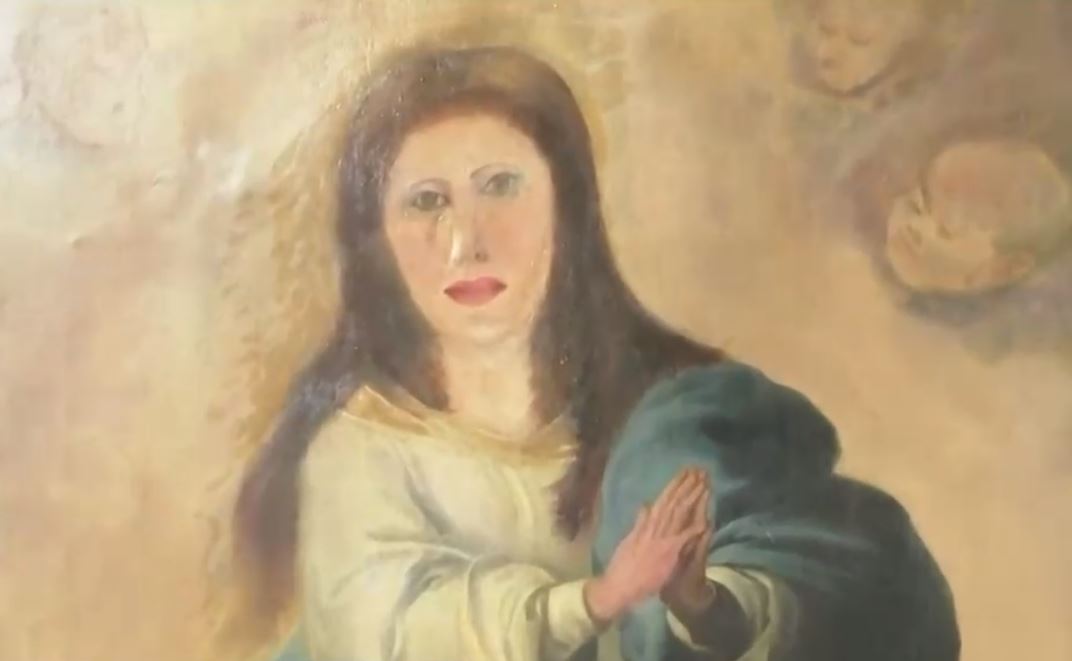 Se trata de "Inmaculadas", de Esteban Murillo, la que fue realizada en 1678 y que ahora sufrió dos intentos de retoques que la dejaron irreconocible.