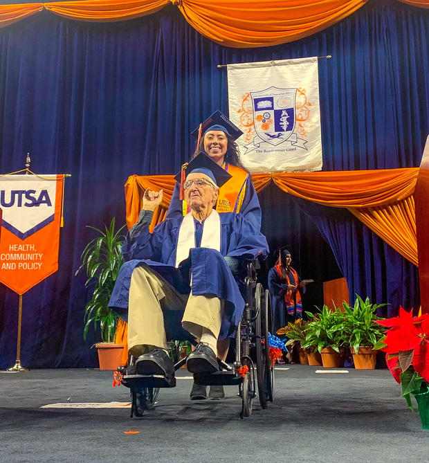 En la década de 1950, Rene Neira inició sus estudios, pero no pudo continuar sus estudios ya que le dio prioridad al trabajo y la familia, según señaló a la cadena de televisión CBS."Luego regresó en los 80, los 90, principios de los 2000, y luego dio la casualidad de que regresó a la escuela nuevamente al mismo tiempo que yo comenzaba", comentó Melanie Salazar, nieta del anciano que se tituló al mismo tiempo que Rene.Tras 70 años de estudios intermitentes, el adulto mayor ingresó a estudiar en 2016 en Palo Alto College en San Antonio, Texas. Lugar donde su nieta comenzaba su primer año de instituto.Lee también:Muro de constructora cayó sobre adultos mayores en MaipúTras terminar ese período, ambos se volvieron a inscribir juntos, pero esta vez a la universidad de Texas. "Sus compañeros, creo, se sentían motivados e inspirados al verlo", indicó la nieta de Rene. Ya en 2021 ambos egresaron de la universidad y el anciano se graduó de economía mientras que su nieta se tituló como comunicadora. Los últimos años para terminar su proceso escolar no fueron fáciles: “He trabajado muy duro a lo largo del tiempo, especialmente en los últimos años, con pérdida de audición, pasando por temporadas sin coche, hubo un semestre en el que tuvo que tomar una baja médica porque tuvo un derrame cerebral, por lo que no pude volver a la escuela este semestre. Y entonces empezó la pandemia”, señaló Salazar. Lee también:Argentina: Denuncian abuso sexual contra mujer de 87 años con alzhéimer en hogar de ancianos