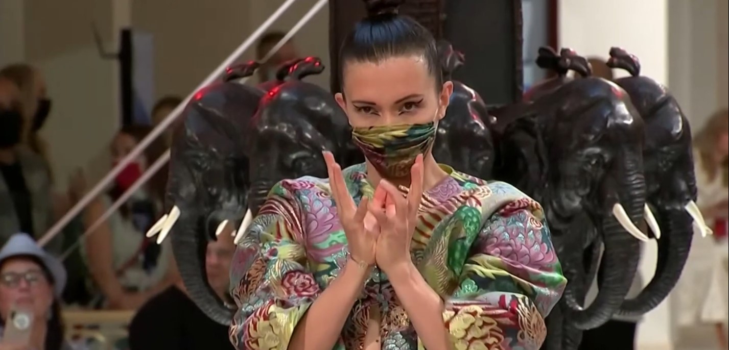 Lee también: Dron fiscalizador vigila el distanciamiento y el uso de mascarillas: Un nuevo método para controlar a los porfiadosLa diseñadora de modas alemana, Anja Gockel, presentó en Berlín su colección primavera-verano 2021, a la cual llamó "Asuka: el aroma de la mañana".