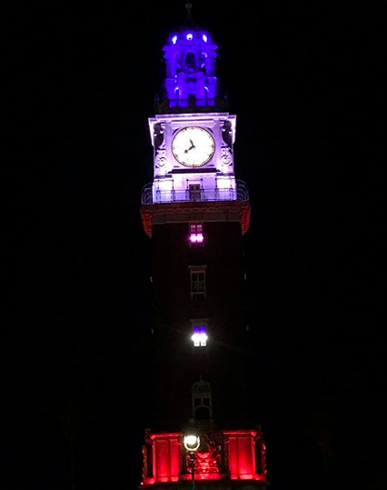 La primera actividad de la semana fue la iluminación de edificios públicos de Buenos Aires con la bandera de Chile.