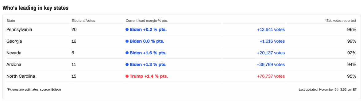 "Incumbe a la administración Trump presentar casos específicos de irregularidad en los votantes", dijo la senadora de Carolina del Sur Lindsey Graham, presidenta del Poder Judicial del Senado, quien también defendió las infundadas afirmaciones de Trump de posible fraude. “Están revisando los archivos de los votantes ahora”, prediciendo más detalles en las próximas 48 horas.