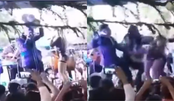 De acuerdo a las imágenes viralizadas en redes sociales, un sujeto se acerca poco a poco a la artista, que en un momento le respondió con una especie de manotazo en sus glúteos.