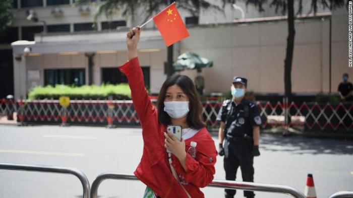 Lee también: Estado de emergencia en Corea del Norte por primer caso de COVID-19Durante el fin de semana, cientos de personas se habían reunido fuera del consulado de Estados Unidos en la ciudad de 16,5 millones de personas, tomando selfies y ondeando banderas chinas. El sábado, se retiraron las insignias estadounidenses, mientras que el domingo comenzaron los trabajos de extracción de una placa frente a la embajada y se cargaron contenedores en camiones, mientras el personal se preparaba para el cierre del consulado.