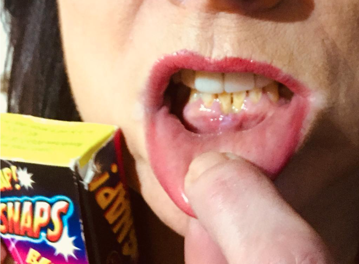 Lisa Boothroyd, de 48 años y de Reino Unido, dijo que cuando los metió en su boca tuvo una sensación parecida a los conocidos "peta-zetas", pero más adelante tuvo un dolor agudo provocado por las quemaduras que este objeto había provocado en sus encías y labio.