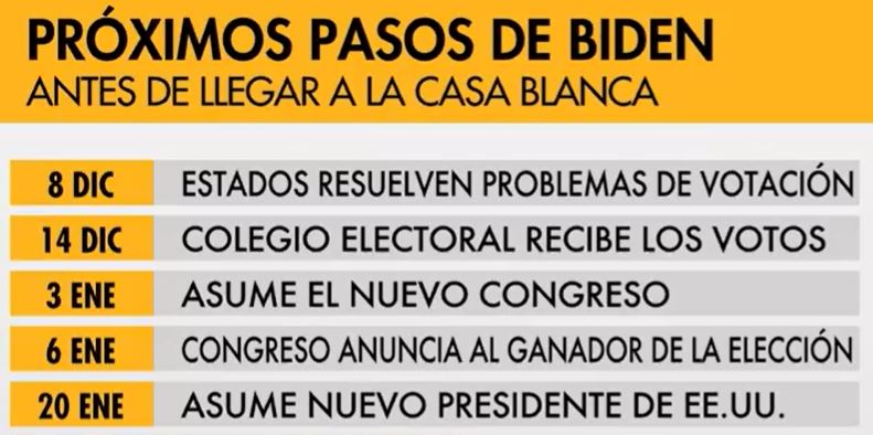 Lee también: Chilena celebró aniversario con su pareja en medio del festejo por el triunfo de Biden en Washington D.C.El 8 de diciembre es la fecha límite para resolver todas las situaciones que se hayan producido en el conteo de votos, realizar reconteos o aclarar las solicitudes de los comandos del Partido Demócrata o Republicano.