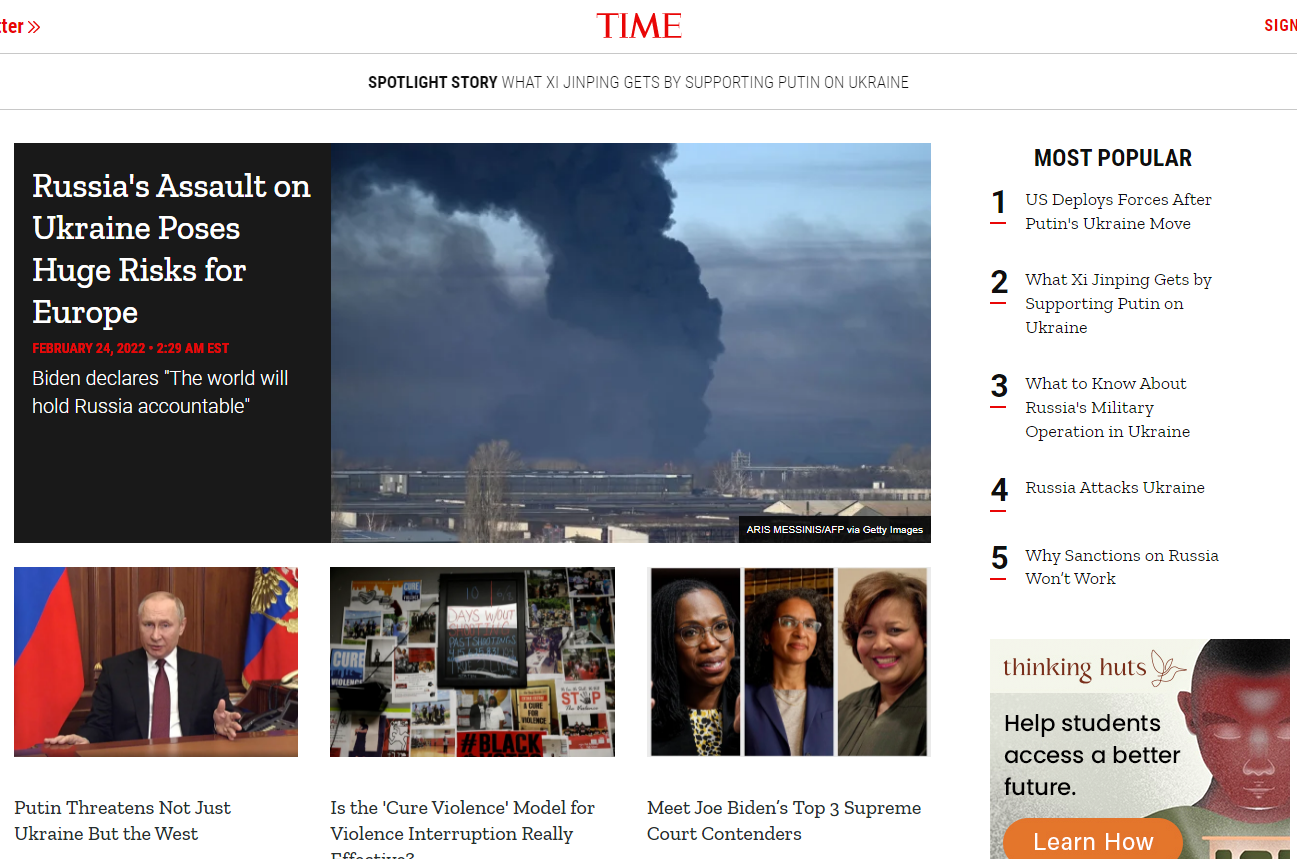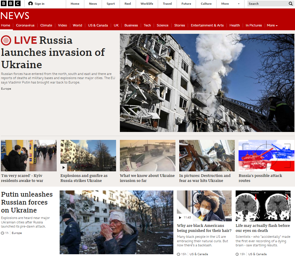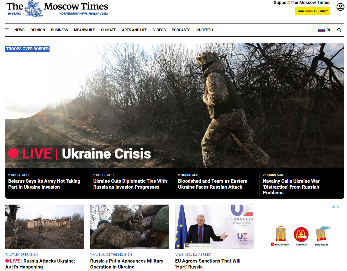 Medios como The New York Times, BBC News, CNN, El País, The Moscow Times o Le Parisien (Francia), son solo algunos de los que han dedicado sus portadas al ataque iniciado por Rusia.