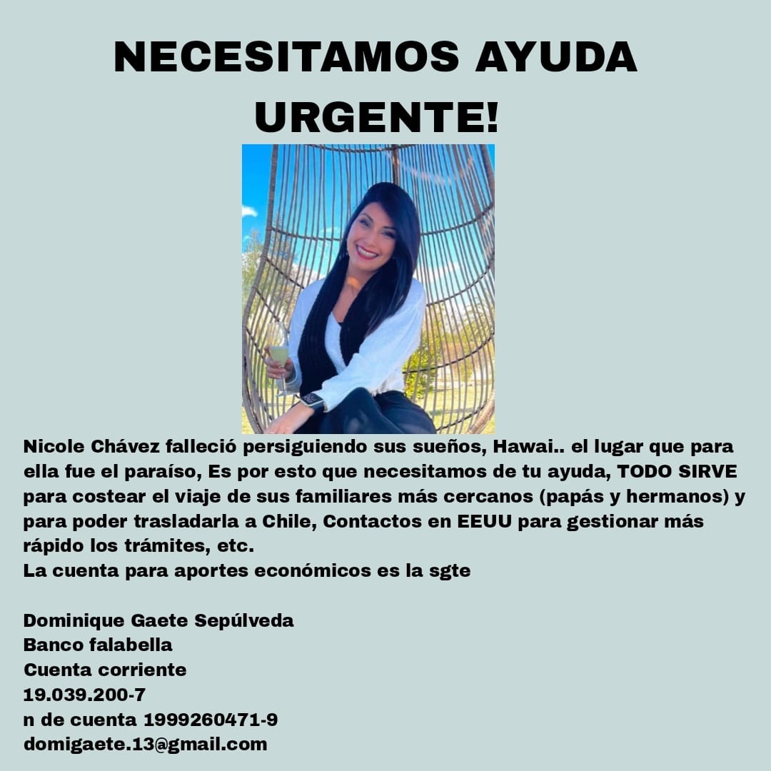 En ese contexto, la familia señaló que no cuenta con los recursos necesarios para costear los gastos que implican transportar los restos de Nicole, por lo que abrieron una cuenta para que cualquier persona pueda colaborar.