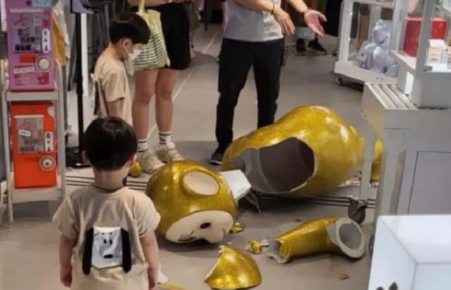 En ese momento, trabajadores del recinto aseguraron que vieron al pequeño pateando el muñeco de color dorado y provocando su caída. Confiando en la palabra de los empleados, la familia pagó US$4.255 dólares de compensación, equivalentes a más de $3,5 millones.
