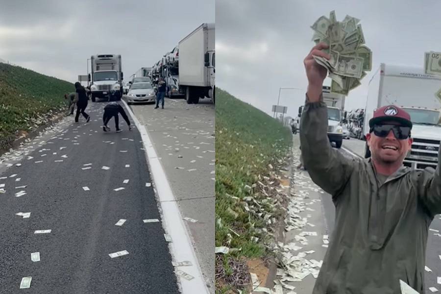 De acuerdo a lo publicado por People el hecho ocurrió en una carretera de la ciudad de San Diego, la que colapsó ya que decenas de vehículos se detuvieron para recoger los miles de dólares que volaban por los aires.