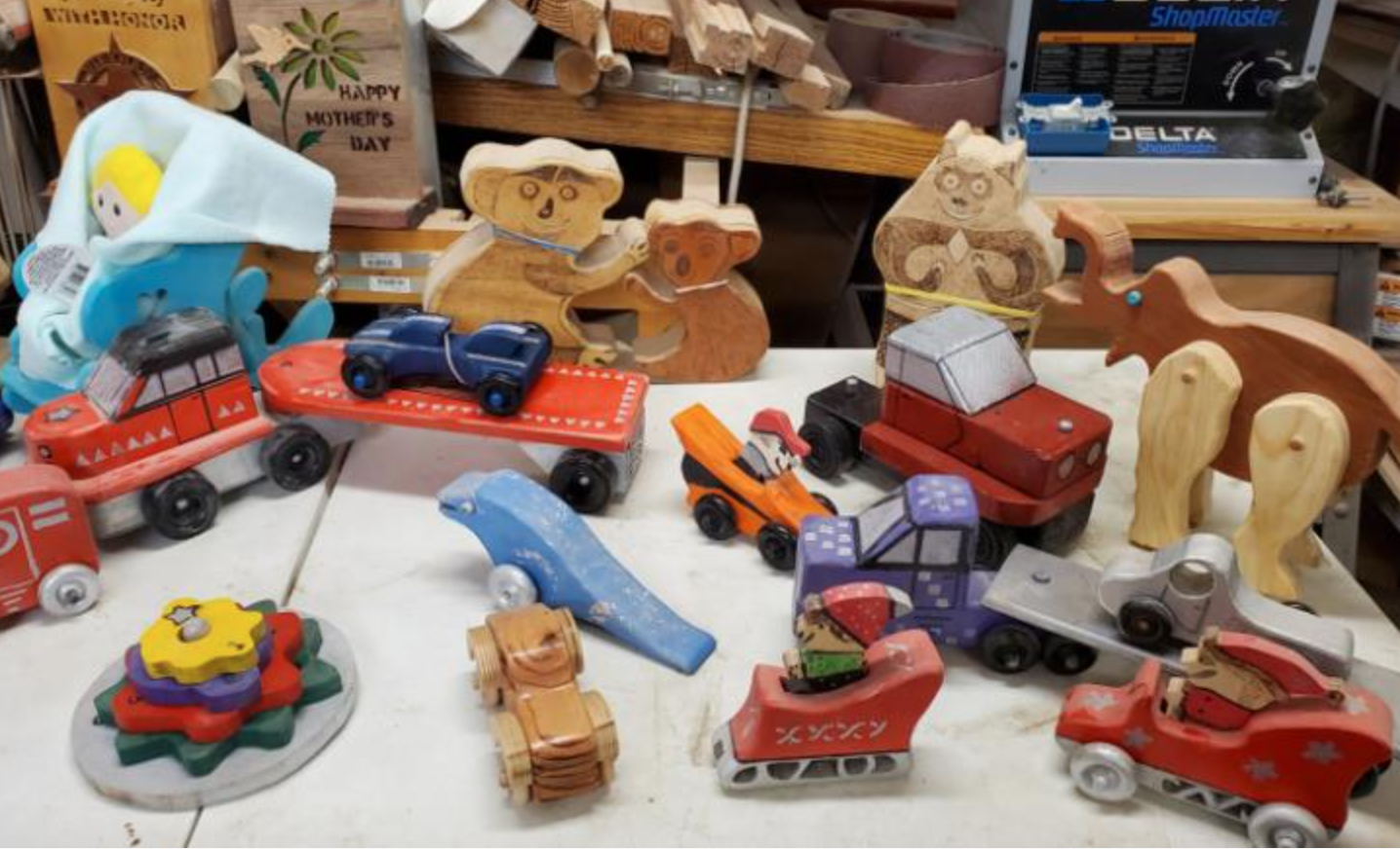 La pareja se unió a un club de carpintería y uno de sus proyectos era construir juguetes para niños. "En Navidad, tuvimos la oportunidad de ver a los niños obtener los juguetes y ver cuánta alegría significó", afirmó Mike.