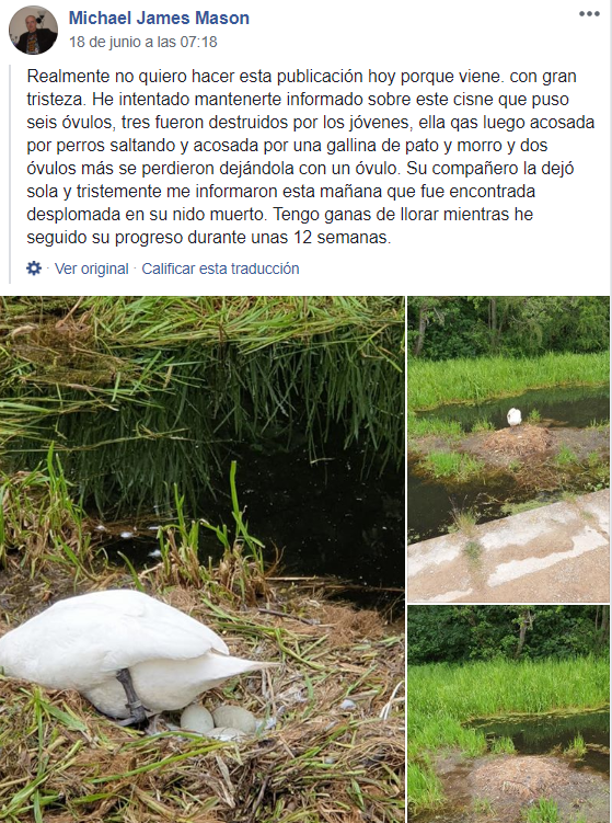 Una triste historia se dio a conocer en Inglaterra, en donde una cisne hembra murió luego que rompieran los huevos que contenían a sus crías.