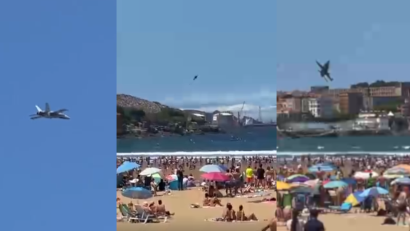 Un momento de espanto y curiosidad vivieron quienes se encontraban en la playa de Gijón, en España, luego de que un avión de guerra volara a solo metros de sus cabezas.