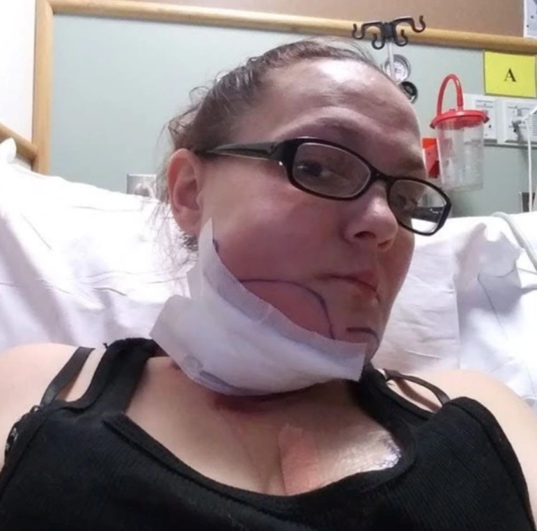 Meighan Maselli, de 36 años de edad, fue a una consulta de rutina cuando le diagnosticaron osteomielitis en la mandíbula inferior, una inflamación causada por una infección en otra parte del cuerpo, razón por la que debió someterse a una serie de intervenciones.
