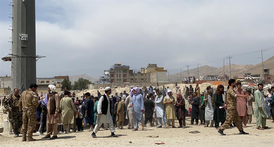 "La escena en el aeropuerto de Kabul hace varias horas según una fuente de una ONG que está tratando de sacar a la gente. El principal problema es que es imposible pasar las puertas y llegar a los aviones incluso si está en una lista de evacuados", señaló en la plataforma virtual.