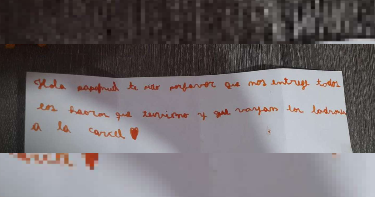 En una carta que se hizo viral, Santino, de ocho años, dio a conocer su petición luego que el martes 14 de diciembre dos delincuentes entraran a su vivienda y se llevaran joyas, un computador, un celular y dinero. "Me partió el corazón", dijo la madre sobre el escrito.