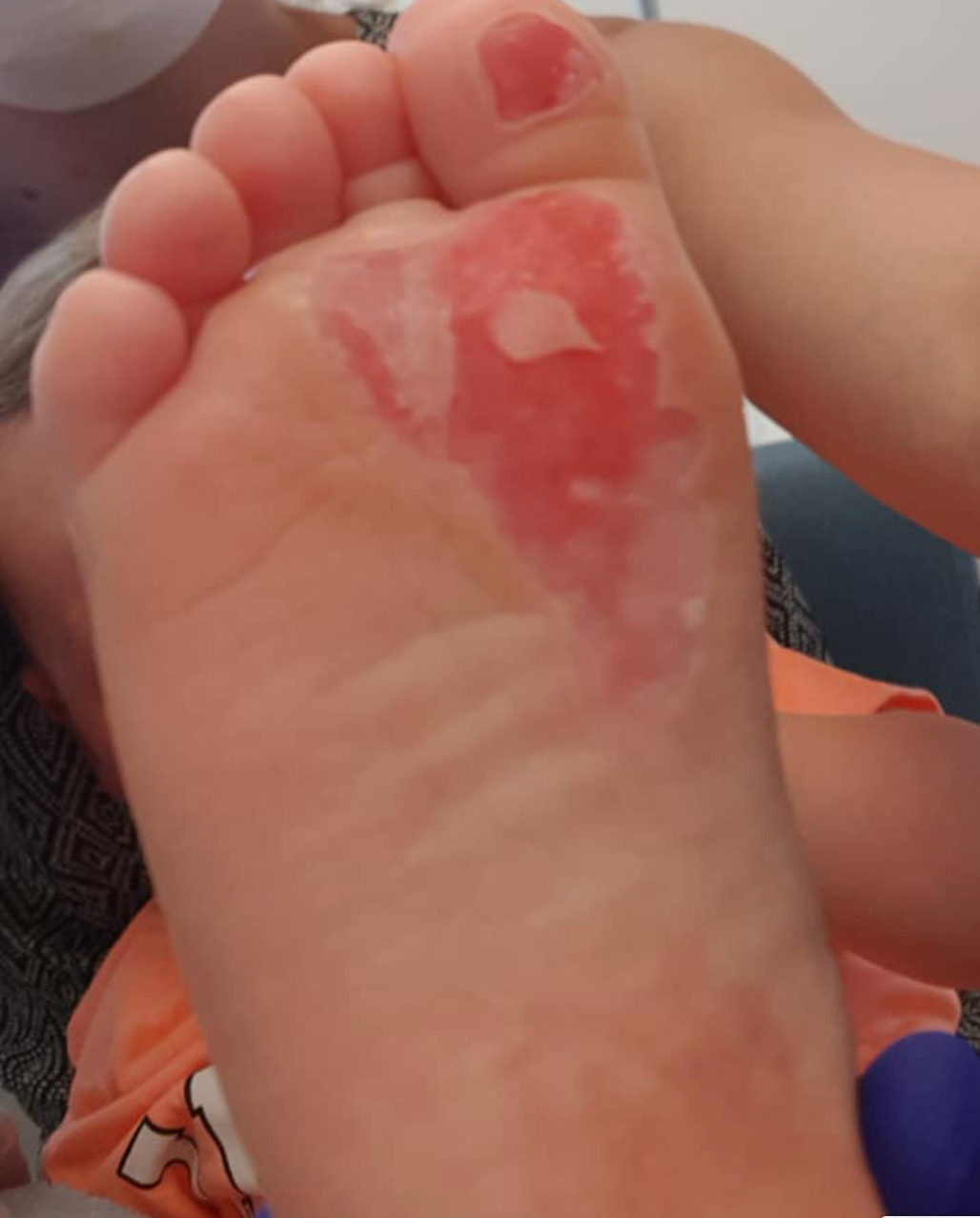 Un niño de casi 2 años sufrió quemaduras en su pie debido a la ola de calor registrada en Reino Unido y gran parte de Europa.