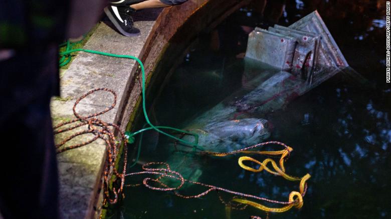 La estatua se guardará por ahora, dijo Walsh. No está claro si se volverá a instalar.