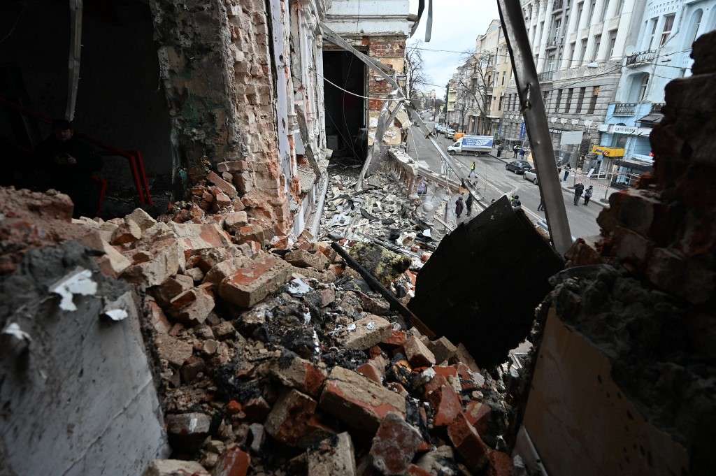 El hotel Kharkiv Palace, que fue dañado la noche anterior por un ataque con misiles rusos, en Kharkiv. (Foto de SERGEY BOBOK / AFP)