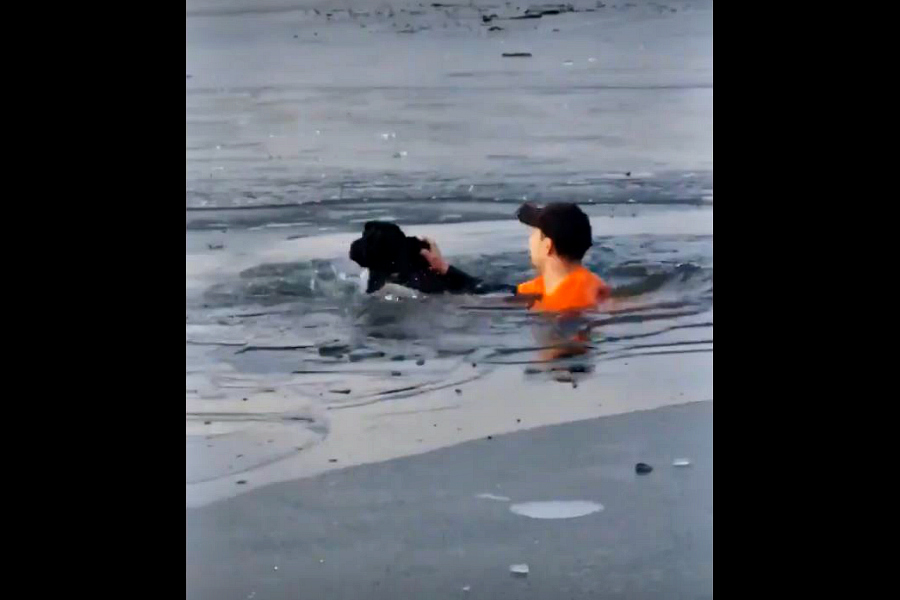Lee también: El perro de uno de los memes más populares celebró su cumpleaños número 10Pell incluso llevaba puesto un pantalón corto, pero no dudó y saltó al agua para, en cosa de minutos, llegar hasta donde estaba el can. Para lograrlo, eso sí, antes tuvo que romper el hielo.