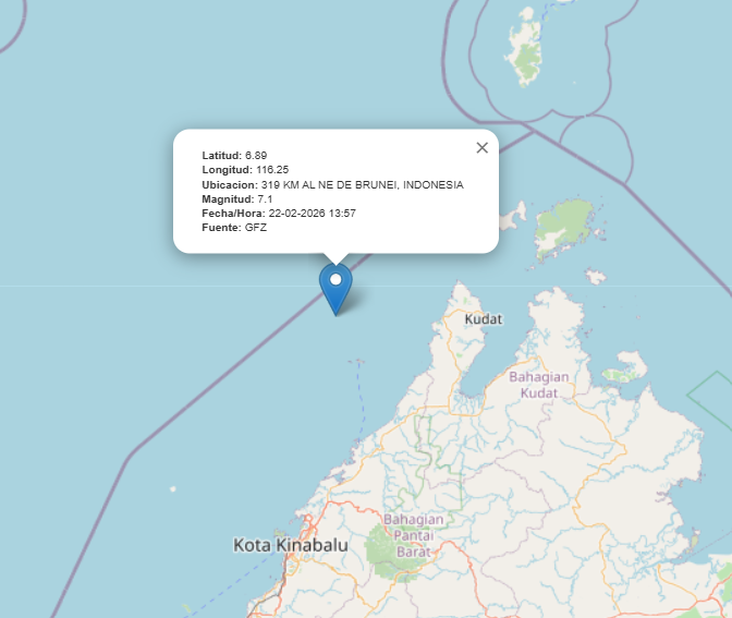 Durante la jornada de este domingo se registró un terremoto de magnitud 7,1 en Malasia.