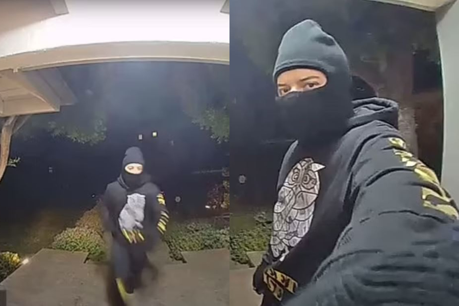 Las imágenes de seguridad de la casa afectada capturaron el momento exacto en que un ladrón se acercó a una de las propiedades y pareció notar la cámara mientras retrocedía rápidamente.