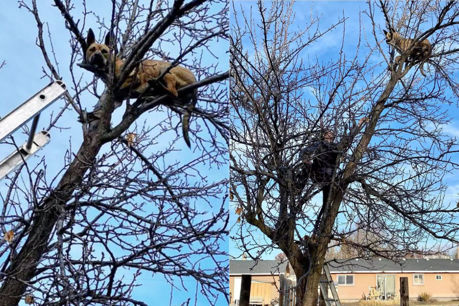 En las fotos, se puede ver a Izzy en lo más alto del árbol junto a un bombero tratando de llamar su atención para que bajara de la rama en la que estaba.