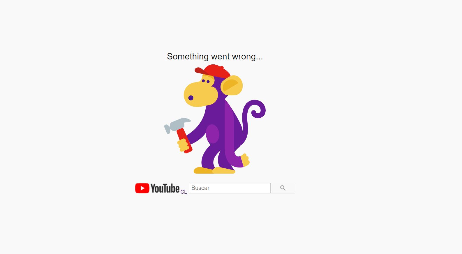 Al intentar acceder a YouTube, éste arroja un error y no despliega el home del sitio, sino que un mensaje alertando de que "algo salió mal".