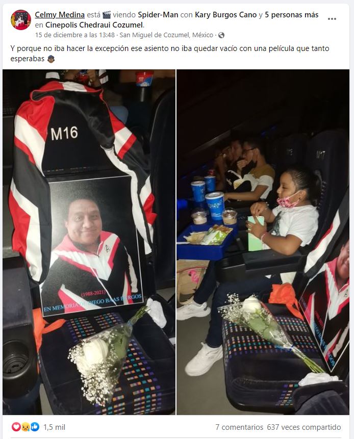 Medina compró una entrada demás para asistir a las salas de Cinépolis Chedraui Cozumel y de esta manera, realizar una especie de altar en honor a su esposo, el que era conocido por su fanatismo hacia las películas de este superhéroe.