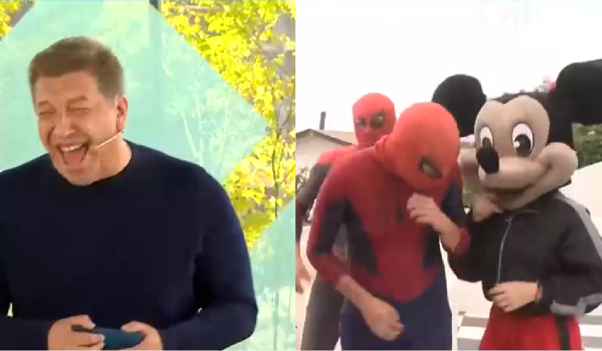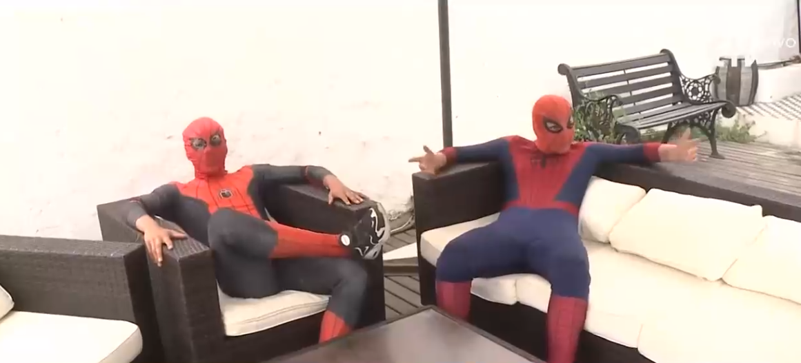 Con el pasar de los minutos, una inesperada visita irrumpió el lugar con la llegada de dos Spiderman que "aseguraron" haber comprado la casa del animador, quien se lo tomó con humor y dijo que "son los wachiturros".