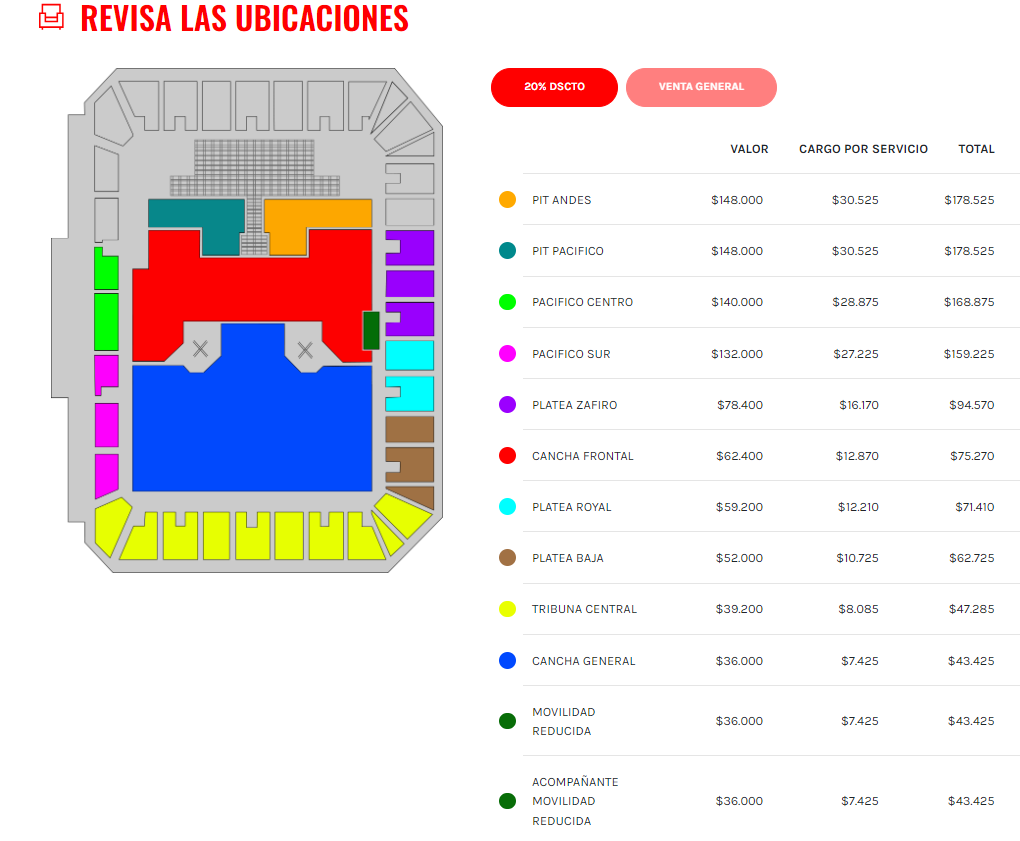 Pueden acceder a ellas los clientes de Entel o banco Scotia, quienes pueden comprar sus tickets con un 20% de descuento.DG Medios