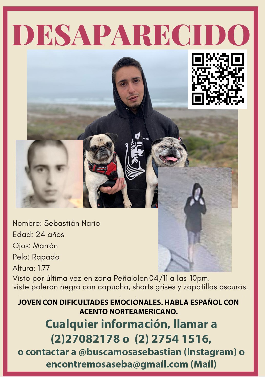 La noche del 4 de noviembre fue la última vez que Sebastián Nario fue visto. Ese día, el joven de 24 años circulaba en Tobalaba con José Arrieta en dirección hacia el sur, en Peñalolén, lugar al que llegó desde su domicilio en La Reina.