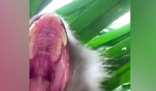 Un video grabado a las 14:01 hrs. de ese día muestra al mono en cuestión intentando comerse el celular.