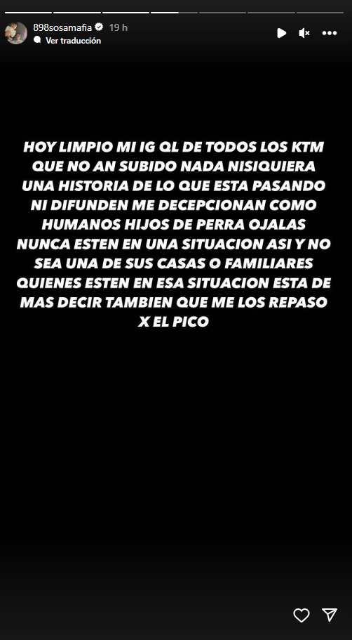 El cantante urbano Julianno Sosa descargó su molestia a través de Instagram e increpó a todas las personas que no han ayudado en los incendios forestales ocurridos el fin de semana en la Región de Valparaíso; emergencia que destruyó cientos de viviendas y dejó 112 fallecidos confirmados. En concreto, el intérprete de Tranquila se lanzó contra aquellos "que no han subido nada, ni siquiera una historia" relacionada a esta catástrofe, asegurando que los dejaría de seguir en la plataforma. "Me decepcionan como humanos, hijo de p... Ojalá nunca estén en una situación así y no sea una de sus casas o familiares quienes estén en esa situación", agregó el artista.